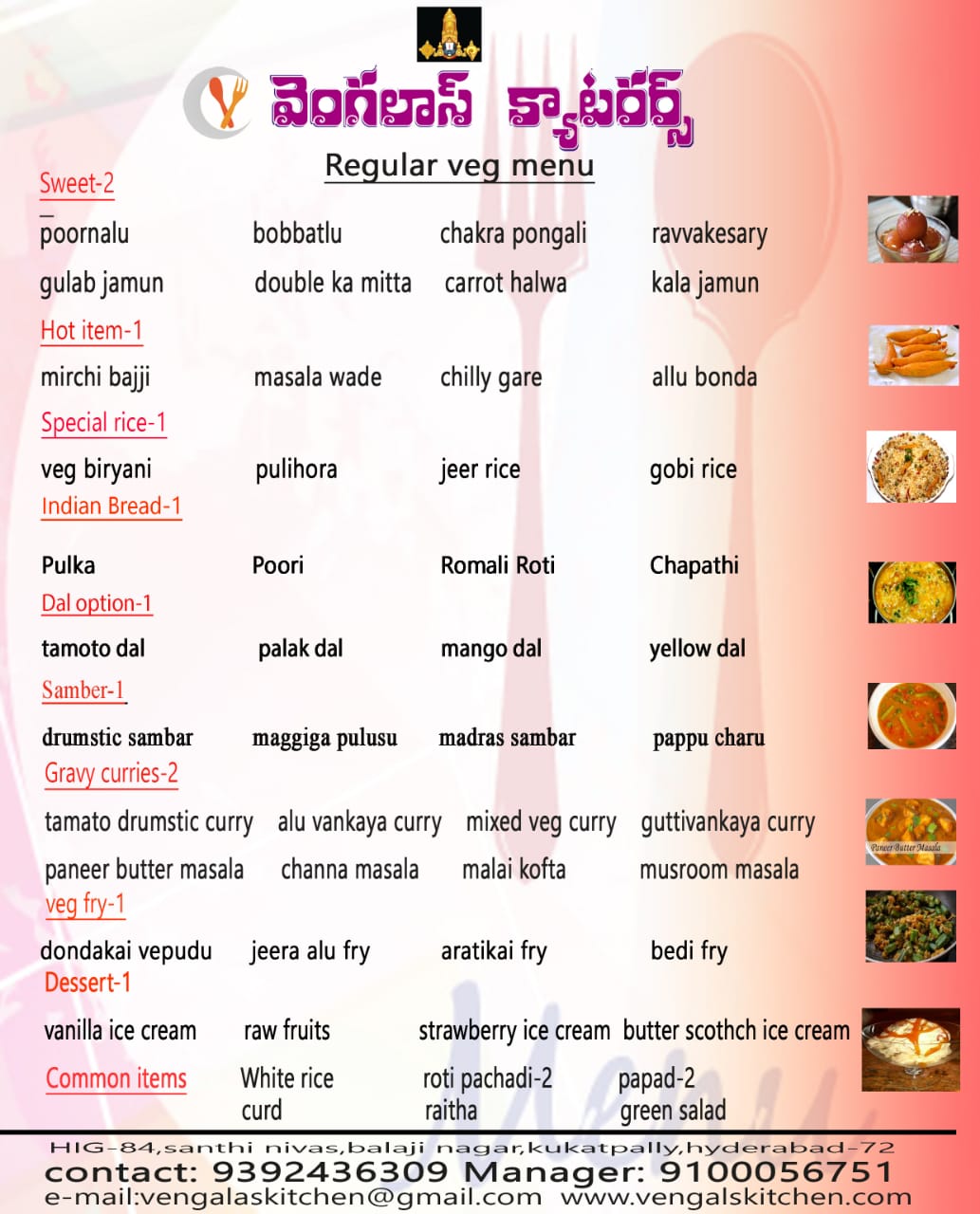 Planner Description : Vengalas caterers have enough experience to handle your orders. We established in 2006, Hyderabadi caterers We started as a curry-point in Begumpet. We experienced in serving catering to corporate offices, Birthday party catering, hyderabadi caterers Wedding catering services, outdoor catering services.Our catering services near to Kukatpally to Miyapur. Hyderabad.